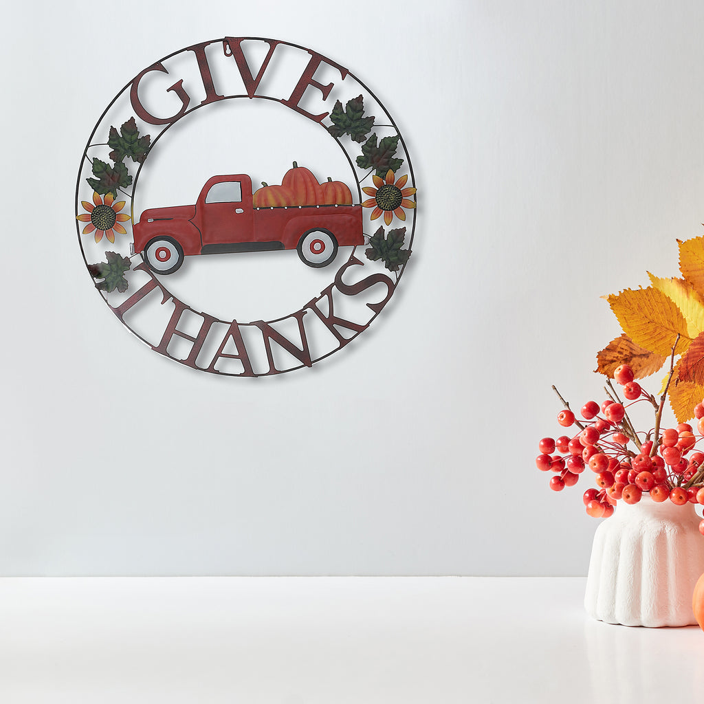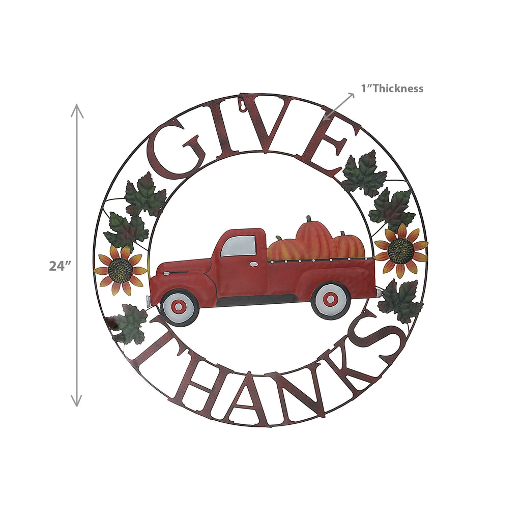 24" Metal Red Truck Wheel Décor (Give Thanks)
