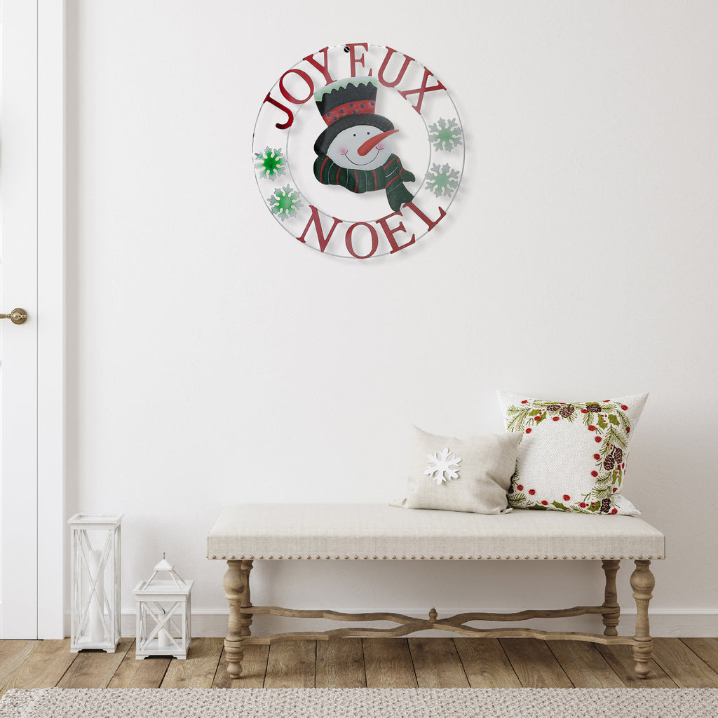 24" Metal Snowman Wheel Décor (Joyeux Noel)