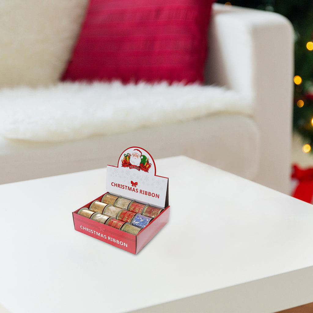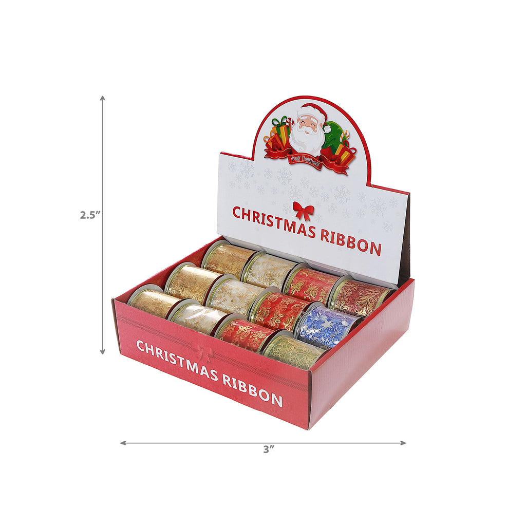 Assorted Gold Print Ribbon (2.5" X 3 Y) (12/Pdq) - Set of 12