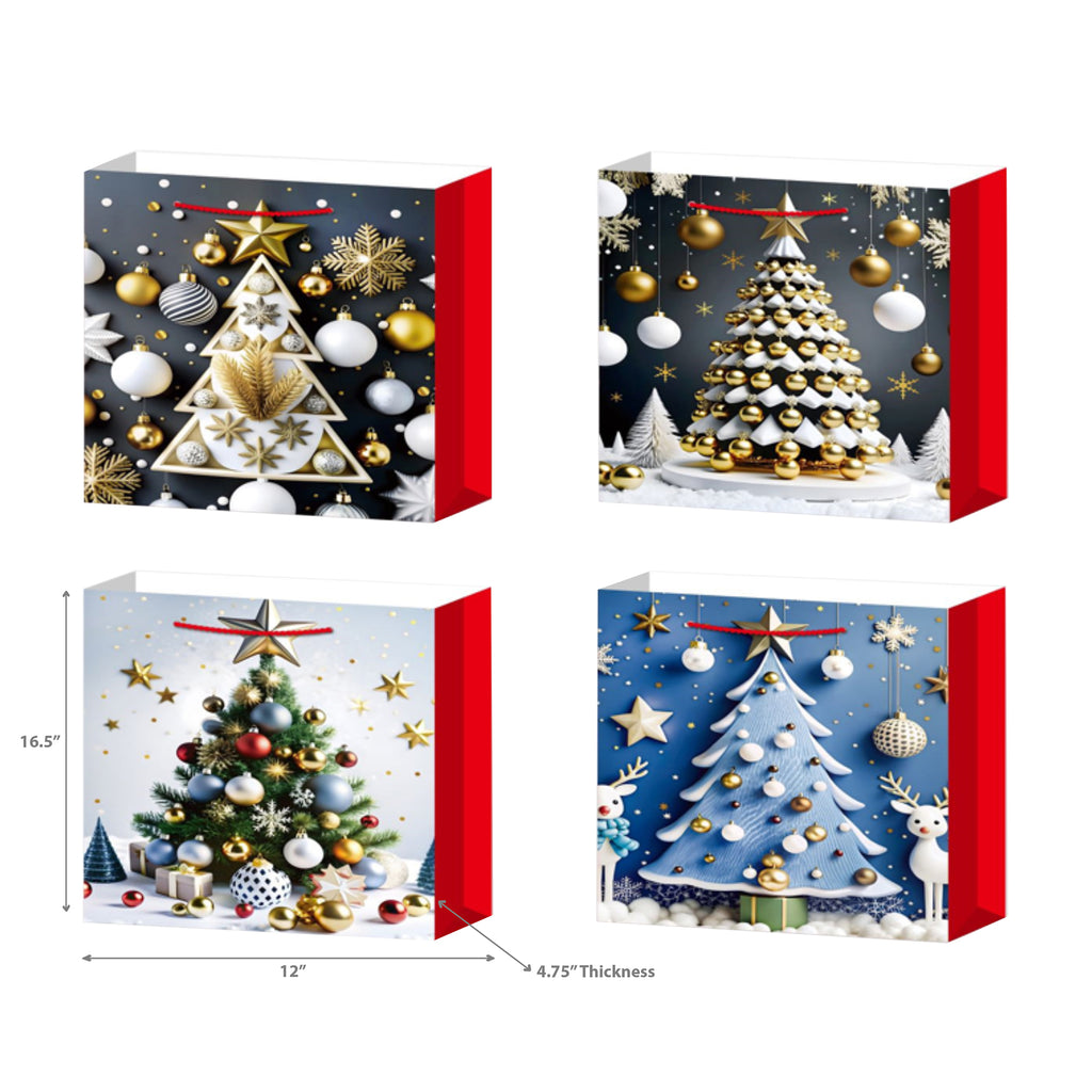 Christmas Gift Bags (Tree) (Asstd) (X-Large) - Set of 12