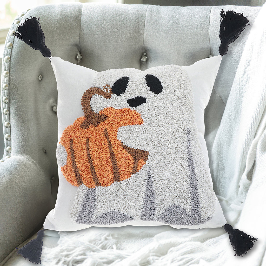 Cotton Embroidered Cushion (Ghost With Pumpkin) - Set of 2