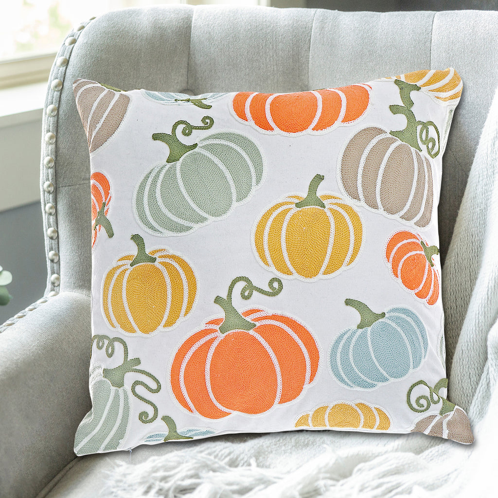 Cotton Embroidered Cushion (Pumpkins) - Set of 2