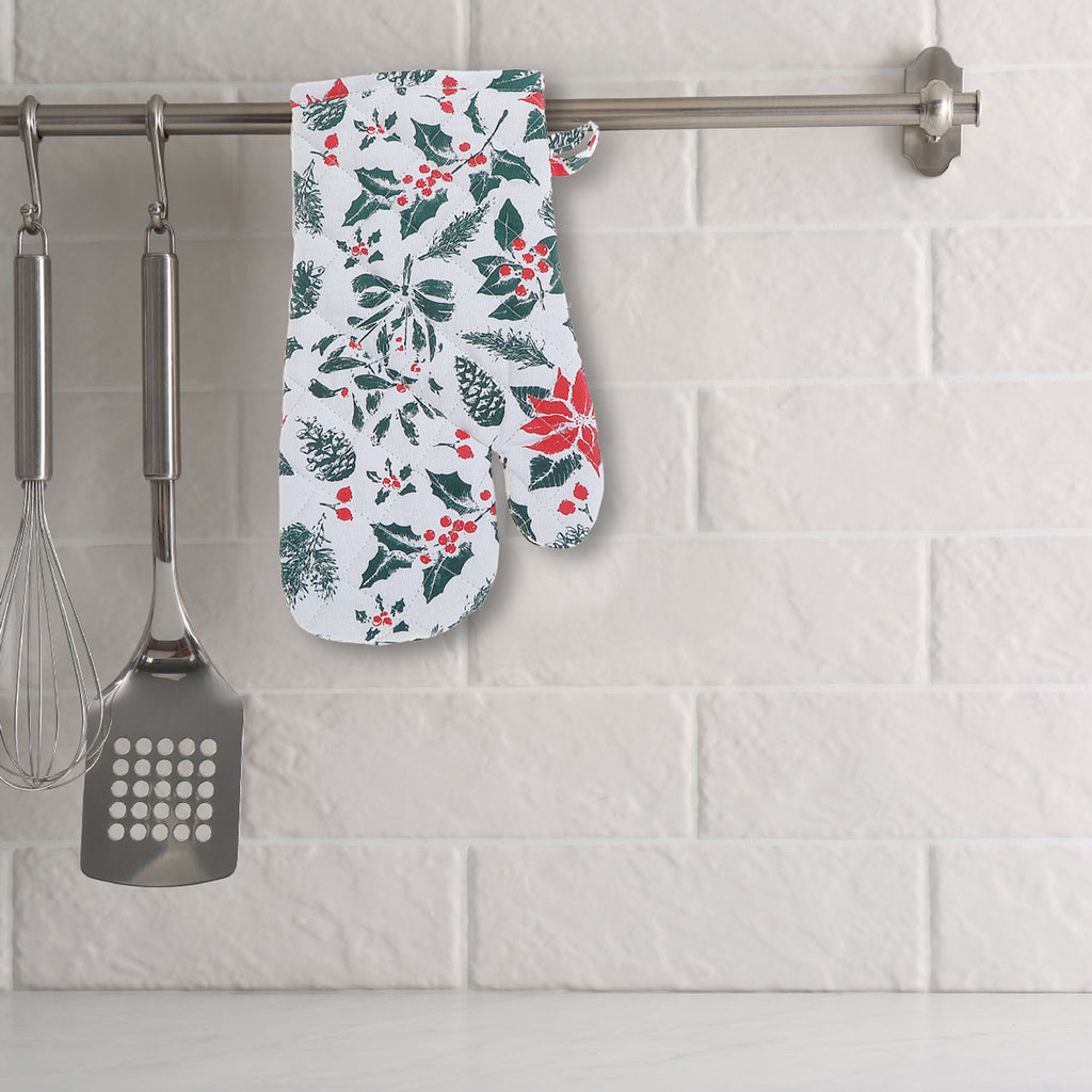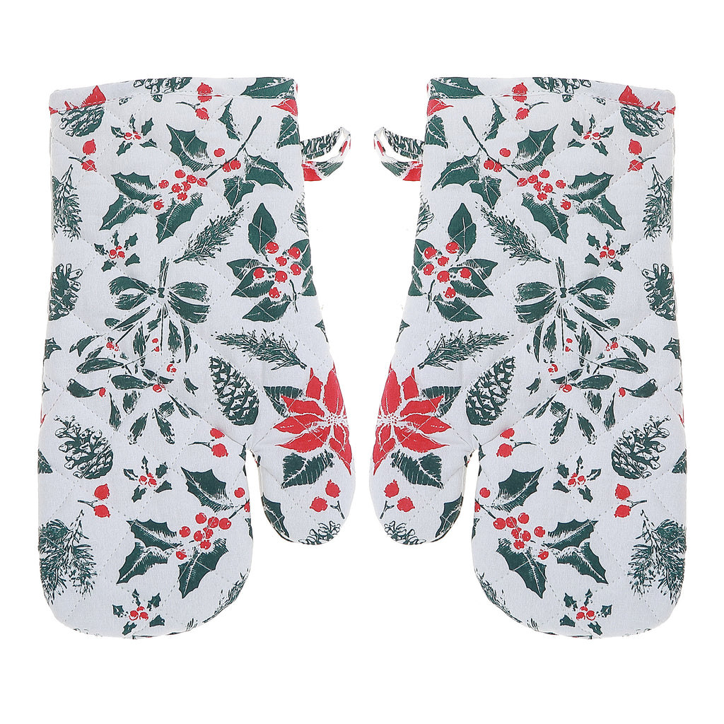 Cotton Oven Mitt (Mistletoe Poinsettia) - Set of 2