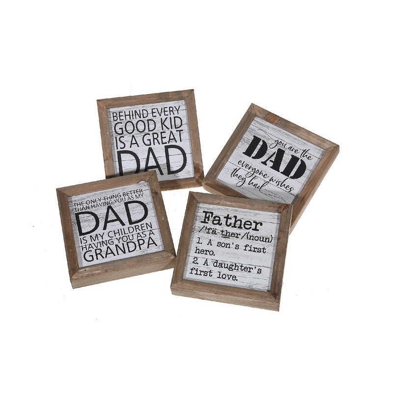 Framed Square Wood Block (For Dad) (Asstd) - Set of 4