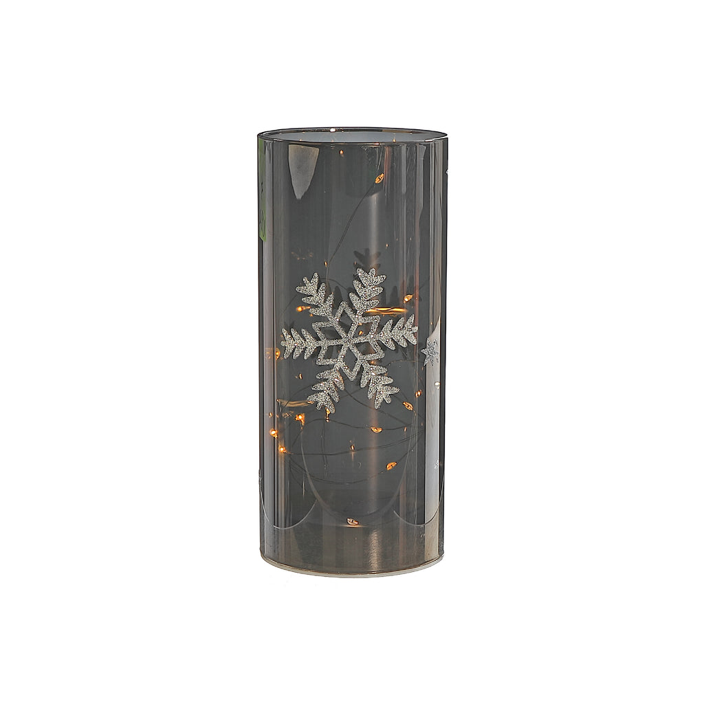 Led Cylinder Glass Stand 7.88" Silver Snowflake Large