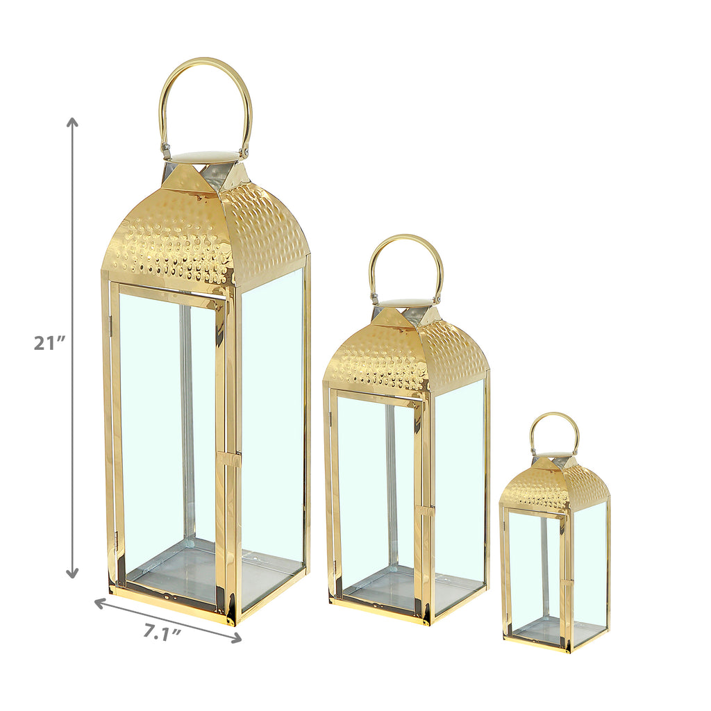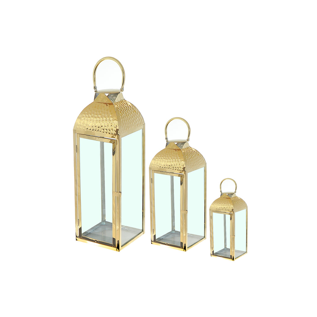 Metal Dimpled Top Nested Lantern Set Of 3 Gold