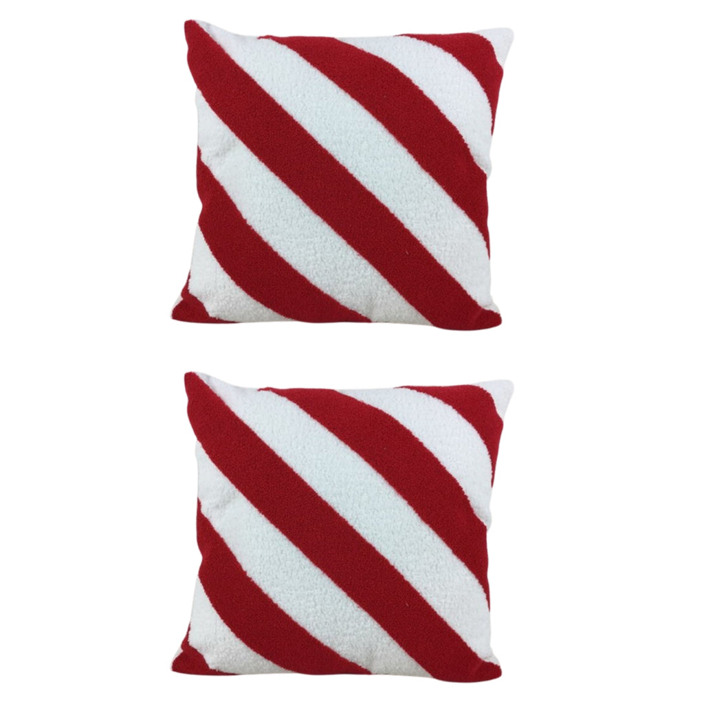 Polyester Embroidered Cushion (Candy Cane Stripes ) 380G Filler - Set of 2