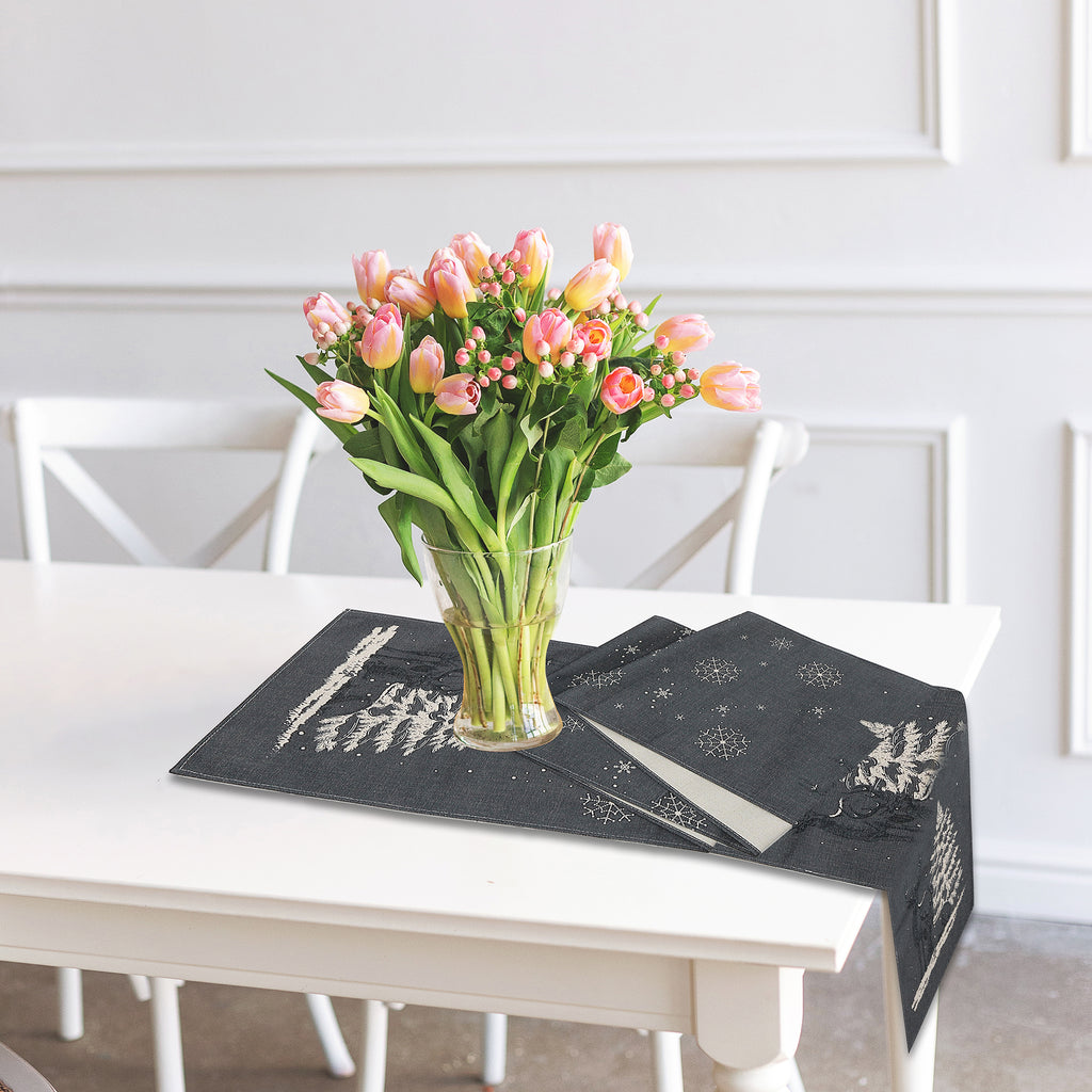 Polyester Table Runner Reindeer And Tree