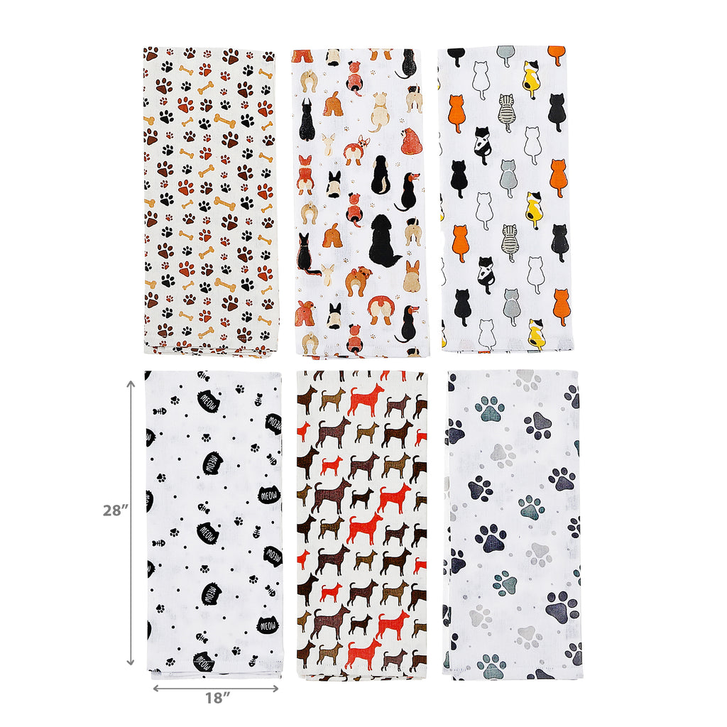 Printed Kitchen Towel Pet Lovers Asstd - Set of 6