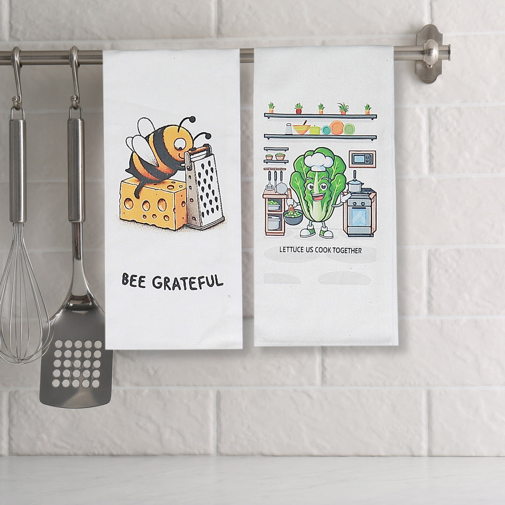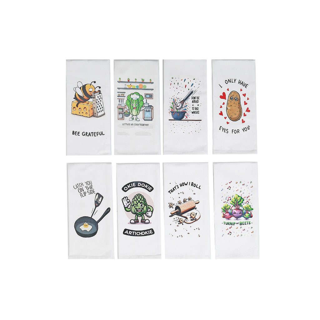 Printed Kitchen Towel Punny Sayings Assorted - Set of 8
