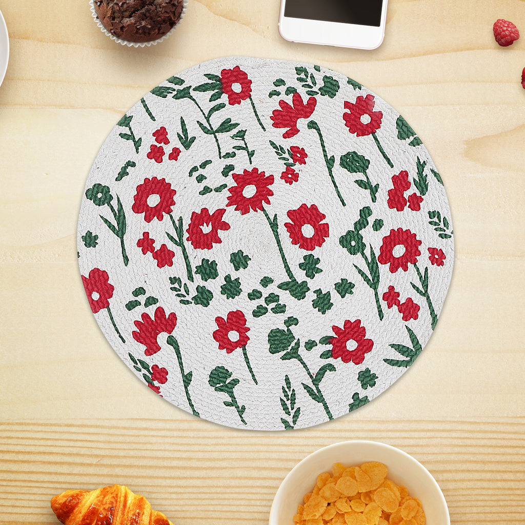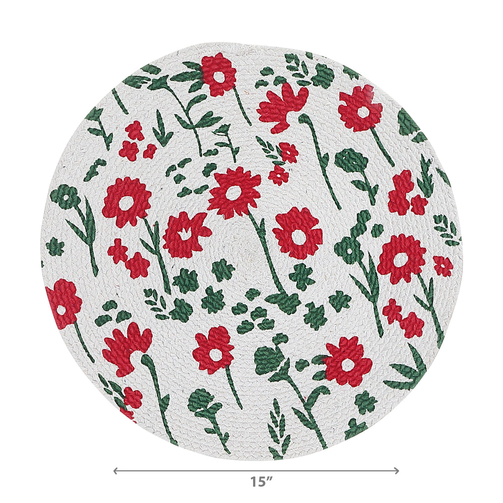 Printed Round Cotton Rope Placemat Red Floral - Set of 12