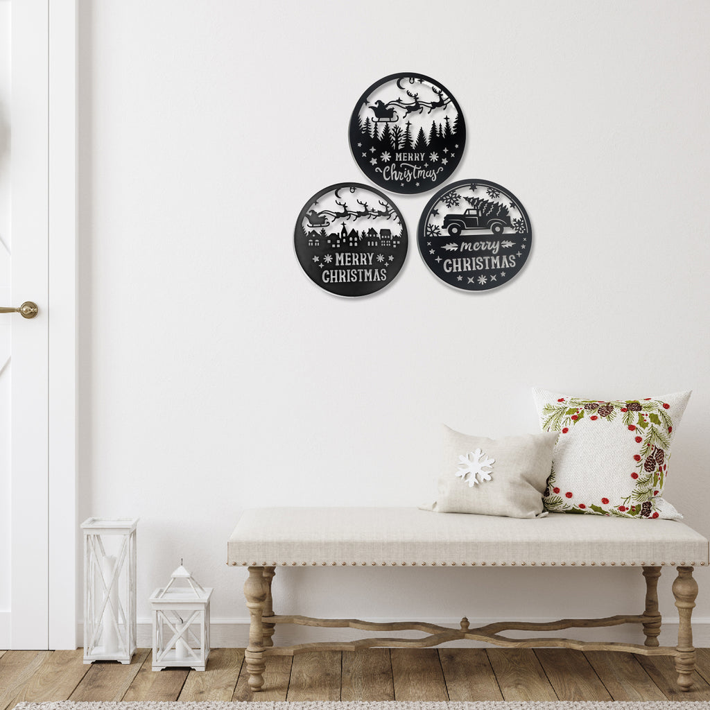 Round Galvanized Scenic Wall Decor (Merry Christmas) (Asstd) - Set of 3