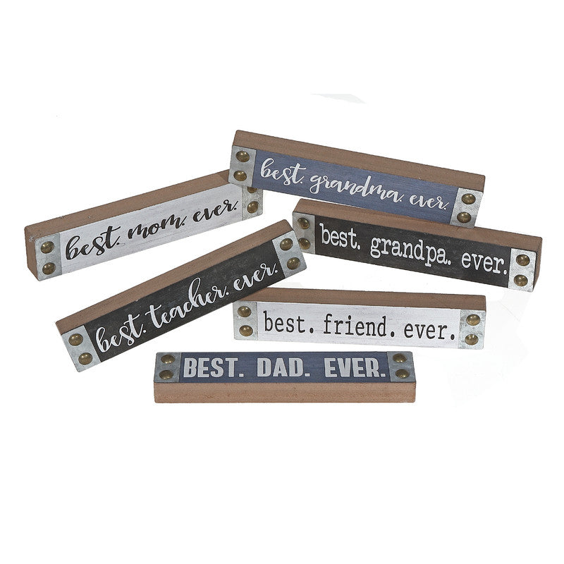 Wood Blocks With Metal Accents (Best Figure Ever) (Asstd) - Set of 6
