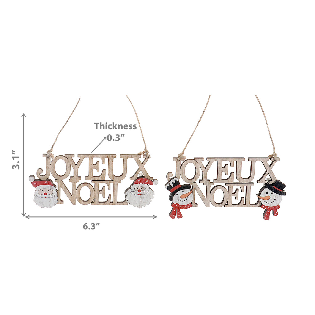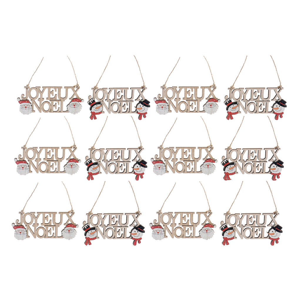 Wooden Joyeux Noel Hanger (Asstd) - Set of 12
