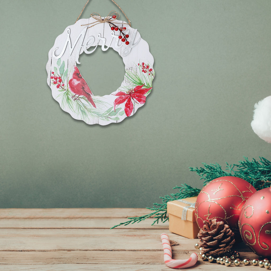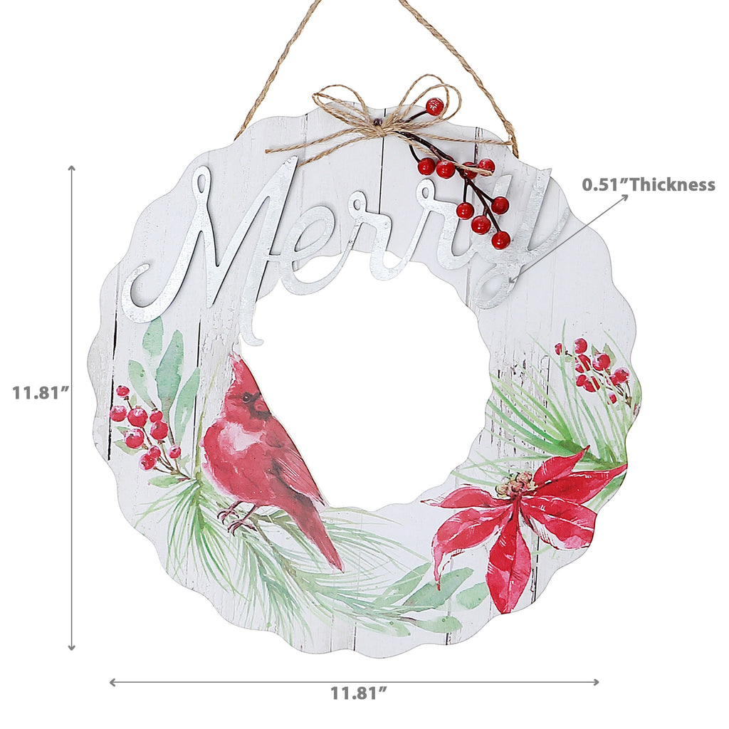 Wooden Wreath Cardinal Hanger Merry